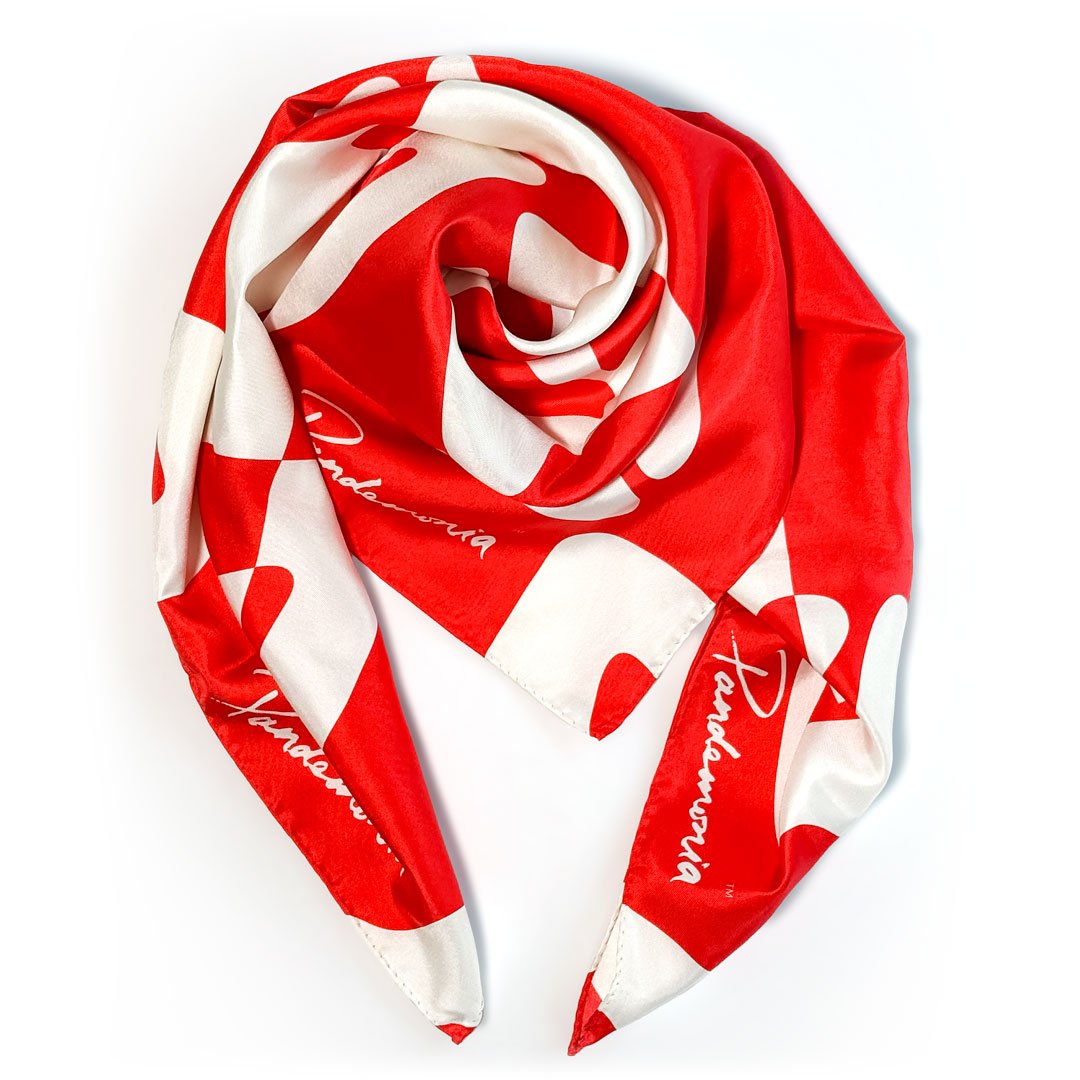 Printed on luxurious silk with a fluid drape and soft sheen, the scarf can be styled at the neck, worn as a headscarf, tied to a bag, or draped as a striking wrap. Playful, seductive and unmistakably Pandemonia, it captures the tension between fashion, fantasy and the gaze.